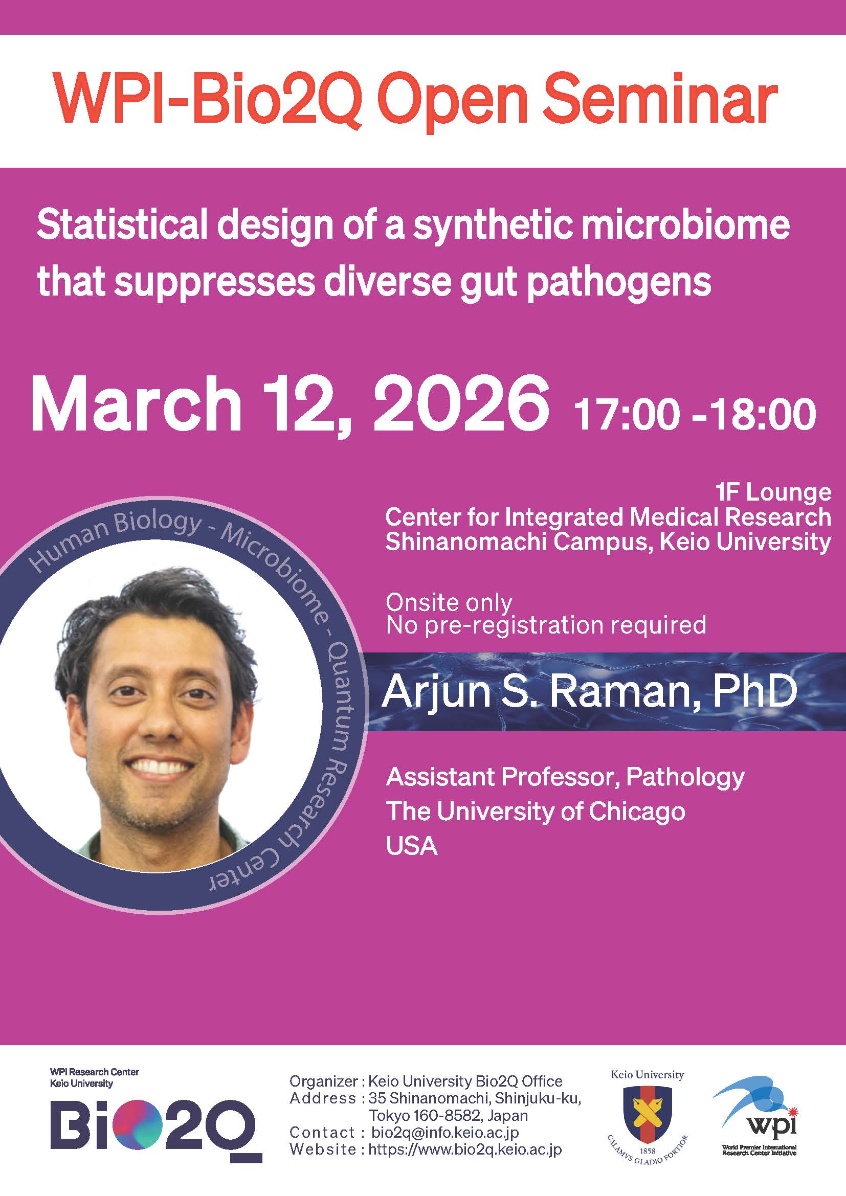 【3/12セミナー】WPI-Bio2Q Open Seminar: Arjun S. Raman, PhD