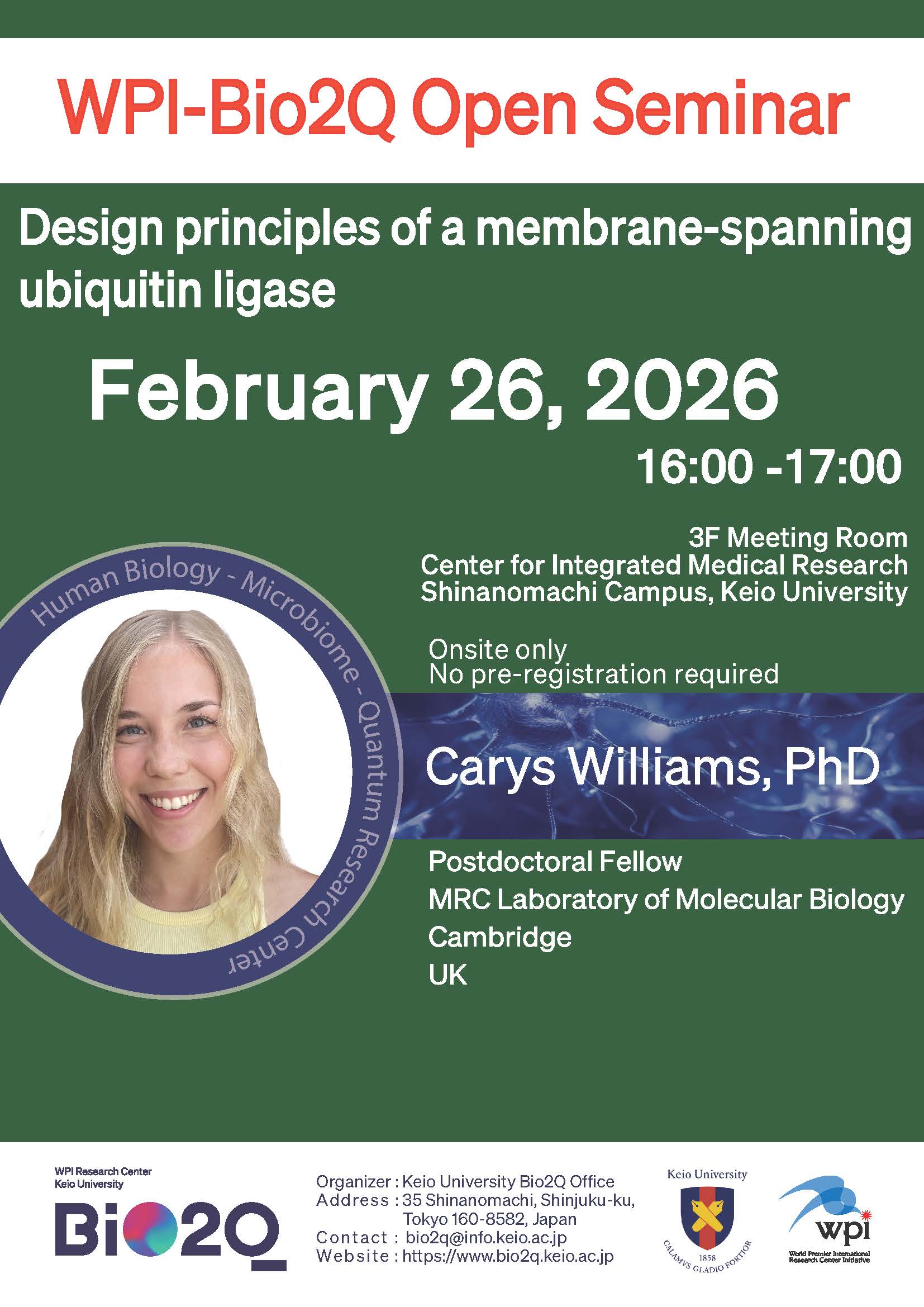 世界トップレベル研究拠点(WPI)慶應義塾大学ヒト生物学-微生物叢-量子計算研究センター(Bio2Q)は以下のとおり公開セミナーを開催いたします。慶應義塾関係者の方であれば、どなたでもご参加いただけます。 日時 2026年2月26日 (木) 16:00~17:00...
