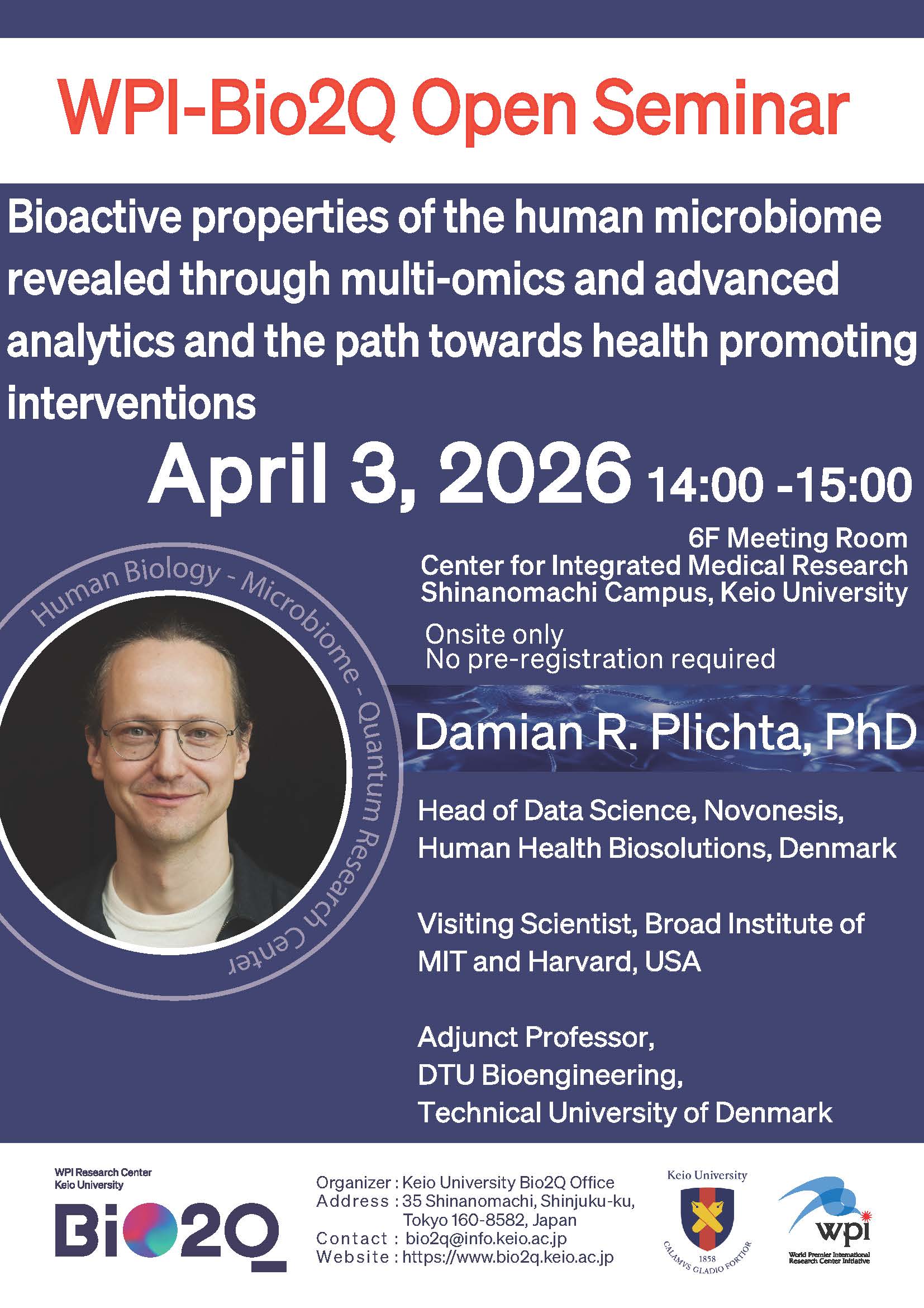 【4/3セミナー】WPI-Bio2Q Open Seminar: Damian R. Plichta, PhD