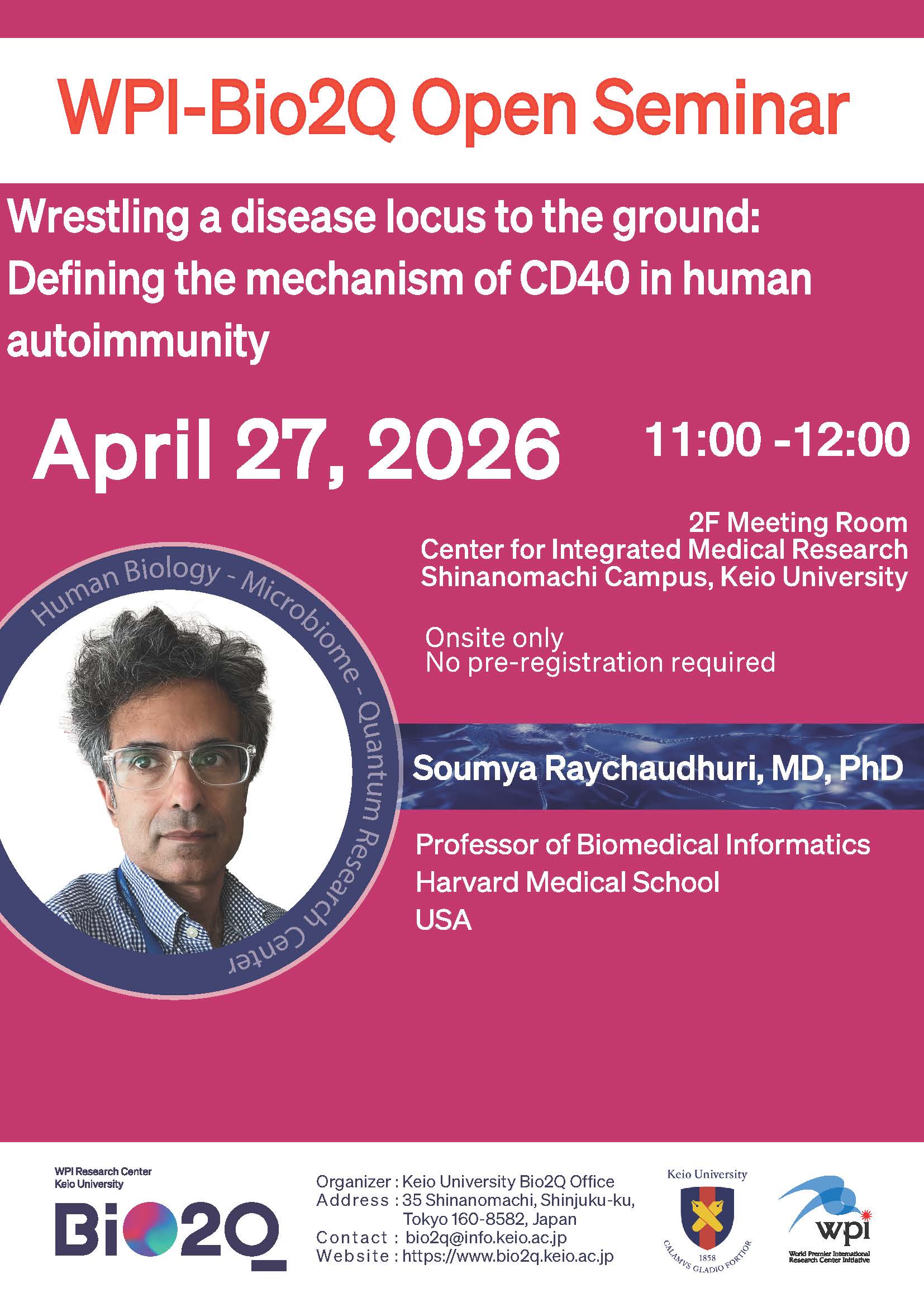 【4/27 Seminar】WPI-Bio2Q Open Seminar: Soumya Raychaudhuri, MD, PhD